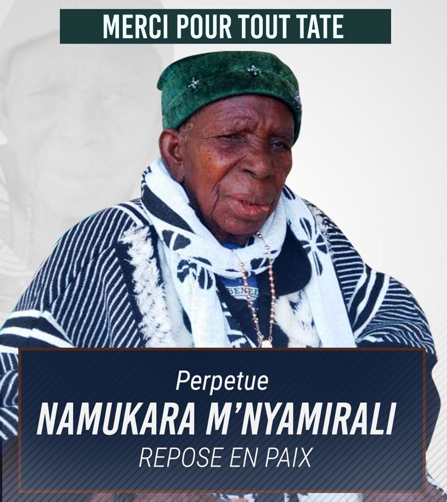 Maman Perpétue Namukara M’Nyamirali dont le nom en langue Mushi signifie « Femme noire qui dure longtemps », a su incarner le sens du nom qu’elle portait. Car, elle a rendu l’âme à l’âge de 111 ans, avec le sentiment d’avoir bien rempli sa mission sur terre, et après avoir vu naître quatre générations de sa progéniture, notamment 8 enfants, 73 petits-fils, 204 arrières-petits fils et 31 arrières-arrières petits-fils.