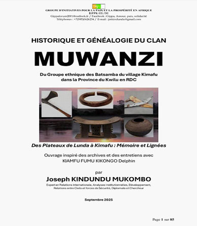 Dans un monde où l'oubli menace de diluer les héritages, un ouvrage de 85 pages vient rappeler avec force que chaque peuple possède une mémoire, chaque famille un récit fondateur, chaque nom une dignité. Intitulé " Historique et généalogie du clan Muwanzi du groupe ethnique des Batsamba du village Kimafu, dans la province du Kwilu en RDC ", ce livre signé par Joseph Kindundu Mukombo se veut à la fois une archive vivante, un acte de transmission et un manifeste contre l'effacement culturel.