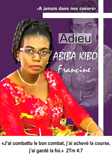 Messe d’action de grâce pour le repos Éternel de l’âme de Mme ABIBA KIBO FRANCINE :