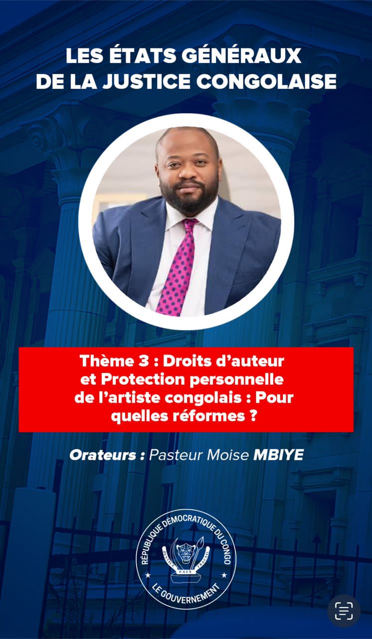 Les États Généraux de la Justice, qui se sont tenus hier lundi à Kinshasa, ont abordé un thème essentiel pour l’avenir de l’art et de la culture en République Démocratique du Congo : « Droits d’auteur et protection personnelle de l’artiste congolais : pour quelles réformes ? « . Lors de cette rencontre, le pasteur et chanteur gospel Moïse Mbiye, également dirigeant de l’Eglise Cité Bethel, a partagé sa vision pour une meilleure valorisation des artistes congolais.