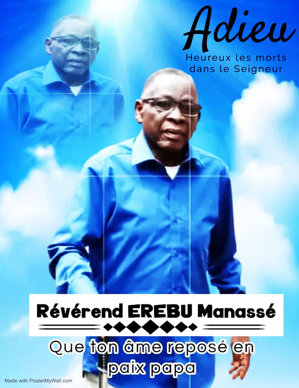 Rév. EREBU MUHUMBIRO MANASSE de la 8ème CEPAC MASINA décédé samedi le 25/02/2023 à Kinshasa