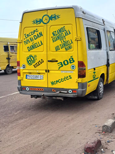 "Nzambe asambelaka te ! Akosambela nani ?", lit-on sur les portières d'un bus. Autrement dit ''Dieu ne prie pas (n'adore pas) ! Qui va-t-il prier /adorer ?'' en lingala.