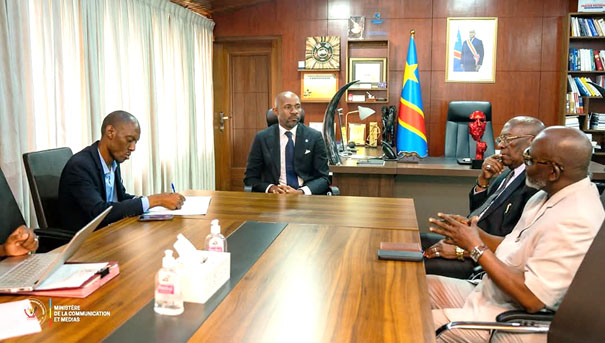 Patrick Muyaya échange avec l’Unisic sur l’organisation des obsèques du Pr Paul Malembe Tamandiak