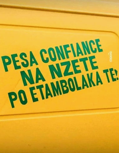 » Pesa confiance na nzete po etambolaka te » pour » Confie-toi à l’arbre car il ne se déplace pas » ou » Place ta confiance en l’arbre car il ne se déplace pas » en français. Comme message, celui-ci est très profond ! Et en tirer la substantifique moelle est loin d’être aisé. La profondeur de ce message se cache dans trois endroits : » Pesa confiance « , » nzete » et » po etambolaka te « .