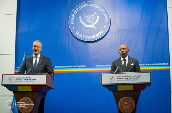 Le gouvernement congolais, via les ministres des Mines, Kizito Pakabomba, et de la Communication et Médias, Patrick Muyaya, a étalé le processus de pillages des minerais congolais mis en place par le Rwanda. C'était au cours d'un briefing spécial presse co-animé, hier mardi 18 février, par ces deux membres de l'Exécutif national sous le thème : "Pillage des ressources minières de la RDC, les raisons de la guerre d'agression rwandaise ".