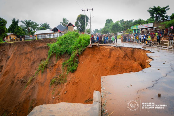 Instruit par le président Félix Tshisekedi, le ministre s'est rendu directement sur le site sinistré, notamment dans la commune de Nzinda, où une importante route d'approvisionnement a été littéralement coupée en deux par une érosion aggravée par les intempéries.