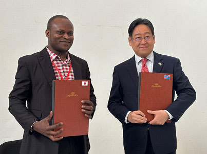 L'ambassadeur du Japon en République démocratique du Congo M. Ogawa Hidetoshi a procédé à la signature d'un contrat de don dans le cadre de l'Aide Non-Remboursable du Japon aux micro-projets locaux contribuant à la sécurité humaine (APL), avec le Révérend Père Jean-Baptiste Mbo Muzir, Gestionnaire du Complexe Scolaire Marie Mère du Rédempteur à Kinshasa.