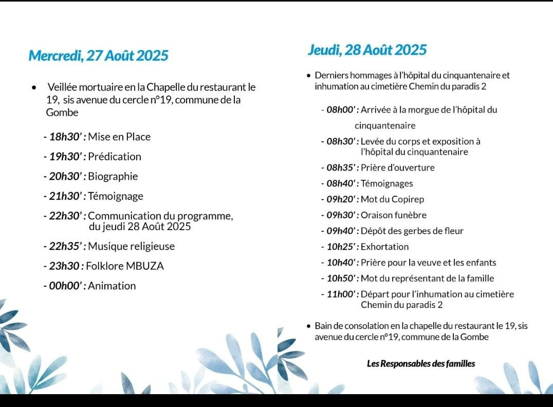 Programme obsèques Alphone Nzomvuama