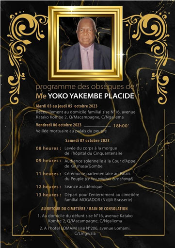 Programme des obsèques de Me Yoko Yakembe Placide