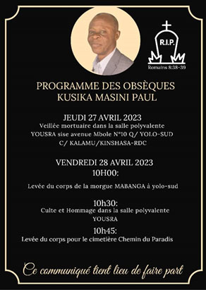 PROGRAMME D’OBSEQUES KUSIKA  MASINI  PAUL