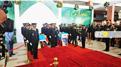 Auparavant, l'assistance a également suivi la lecture de l'Ordonnance présidentielle nommant à titre posthume ces deux officiers aux grades respectifs de Lieutenant-général et de général de brigade, par le Commandant suprême de l'armée et de la Police.