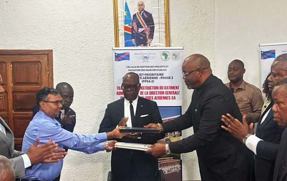 Celui-ci précise que ce contrat est conclu entre la Régie des voies aériennes, maître d'ouvrage, et la Société générale congolaise SARL, attributaire du marché, choisie par appel d'offre international pour exécuter lesdits travaux.