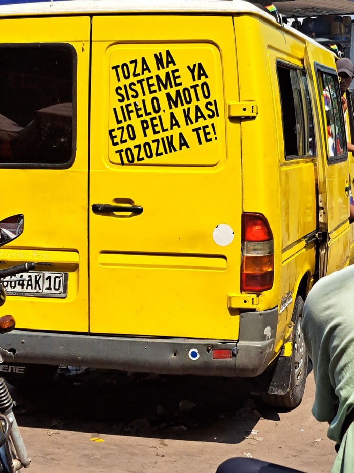 Quel message véhicule cette phrase gravée sur la carcasse arrière de ce bus ? Cette pique qui sillonne les artères de la capitale, n’a pas échappé à notre œil inquisiteur ? Mettons-nous à la décrypter.