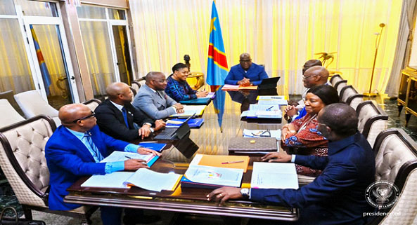 Le Président Félix Tshisekedi a dirigé la troisième réunion restreinte du gouvernement, le mardi 25 novembre, à la Cité de l'Union africaine, autour de lui, plusieurs membres clés de l'Exécutif, dont le vice-Premier ministre en charge de la Défense nationale, les ministres de la Santé et de la Formation professionnelle, ainsi que le vice-ministre de l'Intérieur. À l'ordre du jour figuraient la communication du Chef de l'État, les points d'informations sectoriels et l'examen de plusieurs textes soumis à adoption.
