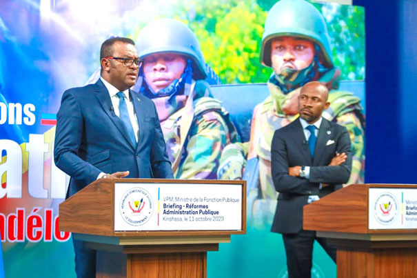 Le ministre de la Communication et Médias, Porte-parole du Gouvernement, Patrick Muyaya et le Vice-Premier ministre, ministre de la Fonction publique, Modernisation de l’Administration et Innovation du service public, Jean-Pierre Lihau, ont co-animé hier mercredi 11 octobre, un briefing presse autour de » Réformes en cours de mise en œuvre au sein de la Fonction publique : premiers résultats et perspectives « .