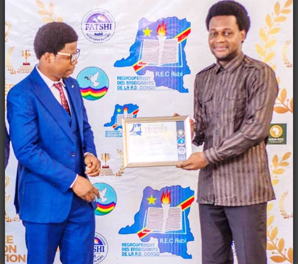 Le Directeur général de l’Insitut Narional du bâtiment et des travaux publics (INBTP), Cédric Tshibangu, a eu le privilège de remettre à main propre le trophée panafricain au récipiendaire.