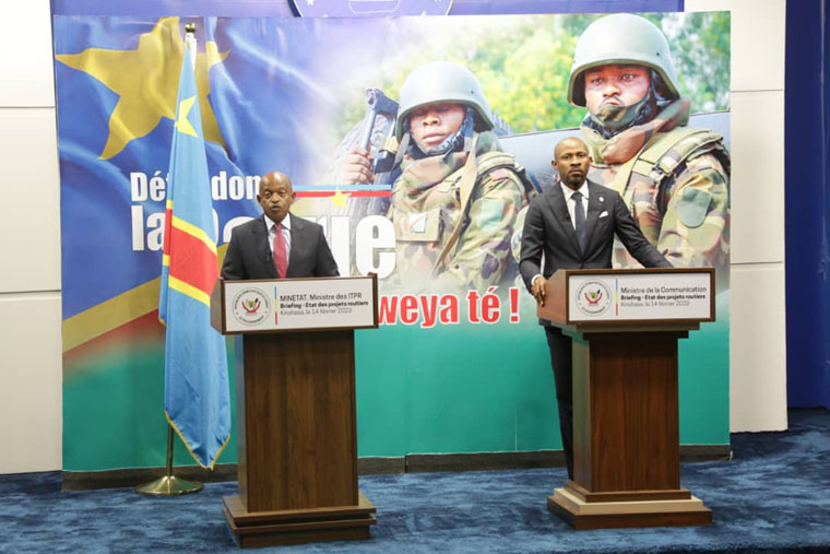 Le ministre d’Etat, ministre des Infrastructures, Travaux publics et Reconstruction, Alexis Gisaro Muvunyi, a présenté l’état des lieux des projets d’infrastructures routières en RDC au cours d’un briefing presse animé conjointement avec le ministre de la Communication et Médias, et Porte-parole du Gouvernement, Patrick Muyaya Katembwe, hier mardi 14 février.