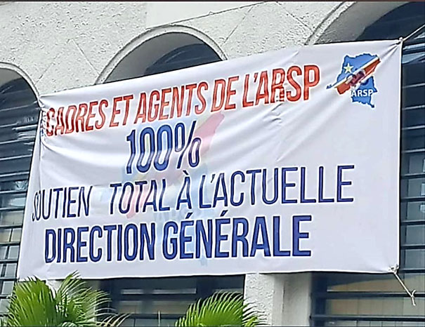 C’est une matinée peu ordinaire qui a régné le mardi 25 avril au siège social de l’Autorité de régulation de la sous-traitance dans le secteur privé (ARSP), sur l’avenue de l’Equateur, en pleine commune de la Gombe, à Kinshasa. Tous les agents et cadres se sont mobilisés pour afficher des calicots de soutien à la Direction générale ainsi qu’au Conseil d’administration. Il s’agit d’une action de grande envergure pour démontrer à tout le pays que l’actuel management jouit du plein soutien de tout le personnel de l’ARSP, malgré les bruits propagés sur les réseaux sociaux par des inconnus qui ont envoyé des tracts sans nom ni signature en parlant sans qualité au nom du personnel. Dans une déclaration lue par Jean Taty Nsungani, Directeur provincial de l’ARSP Kongo Central, les agents et cadres ont tous réaffirmé leur attachement à la Direction générale et au Conseil d’administration. Ci-dessous l’intégralité du Mémorandum des Agents et cadres. DK