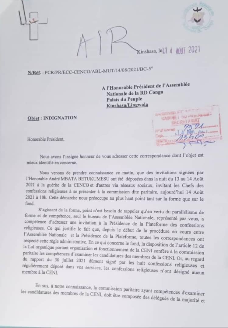 Expliquant l’absence de la CENCO aux travaux de la commission paritaire de l’Assemblée nationale, ce samedi 14 août, les laïcs catholiques précisent que l’invitation leur adressée est arrivée au-delà des heures de service.