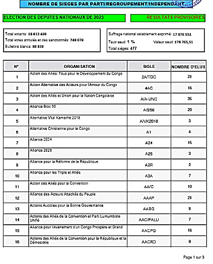 Ceni : voici la liste sur la répartition des sièges des partis et regroupements politiques à la députation nationale