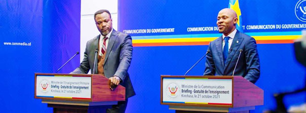 Le Gouvernement et les syndicats des enseignants de l’EPST reprennent incessamment le dialogue interrompu. C’est la conséquence de la signature, mercredi 20 octobre, d’un arrêté interministériel EPST, Budget et Finances. Le ministre de l’Enseignement Primaire, secondaire et technique, Tony Mwaba Kazadi, a annoncé la nouvelle au cours du briefing avec la presse qu’il a co-animé avec le ministre de la Communication et des Médias, Patrick Muyaya, hier jeudi 21 octobre.