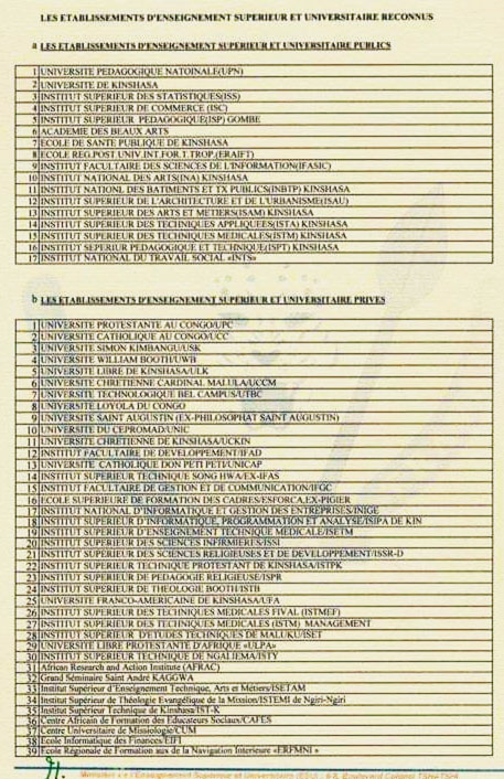 ESU : Voici la liste des 39 universités et instituts supérieurs de Kinshasa fermés!