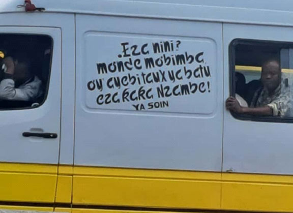 " C'est quoi?, qui connait dans le monde entier le taux de la population si ce n'est que Dieu ! Ya soin " est la version française de "Eza nini? Monde mobimba, oy'ayebi taux ya batu eza kaka Nzambe ! Ya soin". Prenant fait et cause pour Dieu, l'auteur anonyme met au défi quiconque de la planète connaîtrait le taux de la population mondiale.
