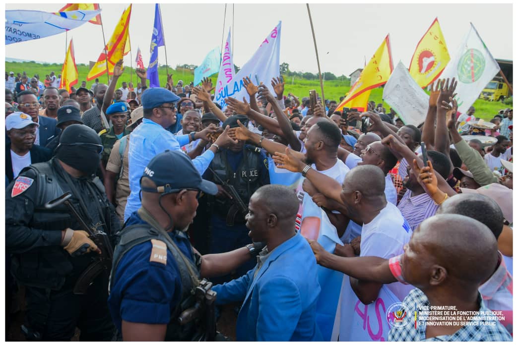 Selon des témoins contactés sur place à Gemena par Forum des As, le patron des ressources humaines de l’Etat a vécu un moment de véritable connexion avec la population venue en masse l’accueillir à l’aéroport.