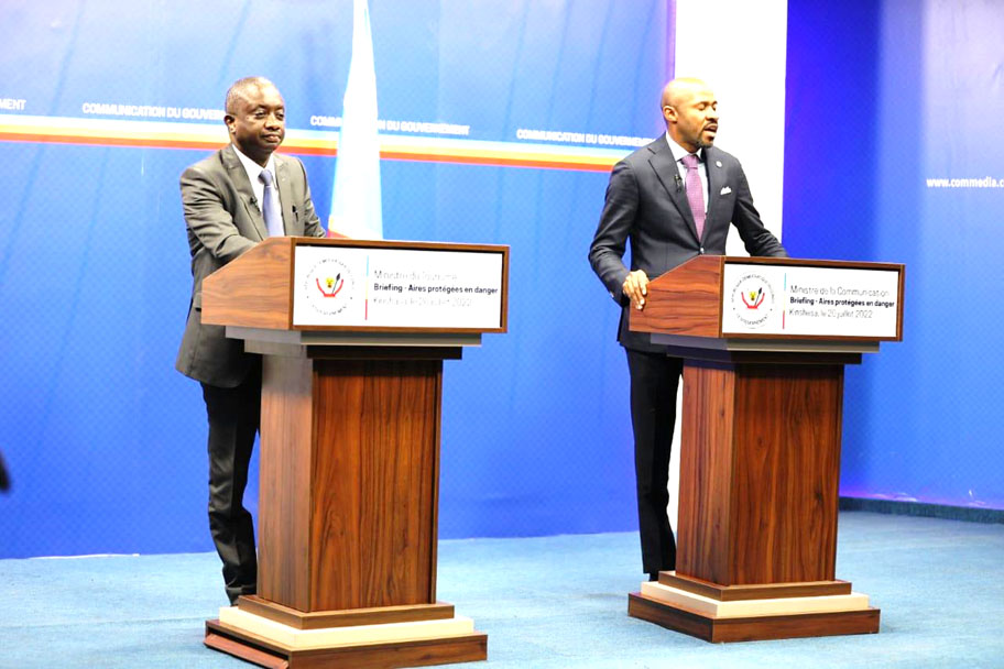 Le devoir de rédevabilité, cher au Gouvernement Sama Lukonde a mis face à la presse, hier mercredi 20 juillet, le ministre du Tourisme, Modero Nsimba Matondo, et son collègue de la Communication et Médias, Porte-Parole du Gouvernement, Patrick Muyaya Katembwe. Objectif : faire voir aux Congolais, et par-delà le monde, les conséquences de l’agression rwandaise sous couvert des terroristes M23 sur les aires protégées de la RDC.