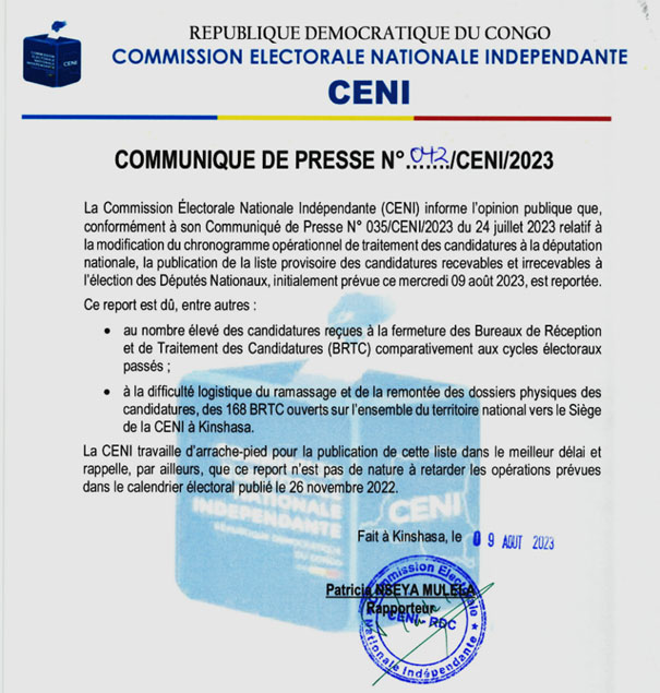 INITIALEMENT PREVUE HIER MERCREDI 9 AOUT, Ceni : la publication de la liste provisoire des candidats députés nationaux reportée