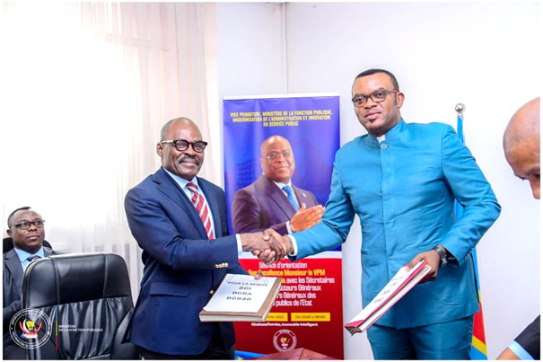 En application de la volonté exprimée par le chef de l’Etat, Félix Tshisekedi, au sujet de la réforme administrative et douanière, le Vice-Premier ministre en charge de la Fonction publique, Jean-Pierre Lihau, et le ministre des Finances, Nicolas Kazadi, ont signé hier lundi 13 mars, les cadres et structures organiques des trois régies financières à savoir : la DGI, la DGRAD et la DGDA.