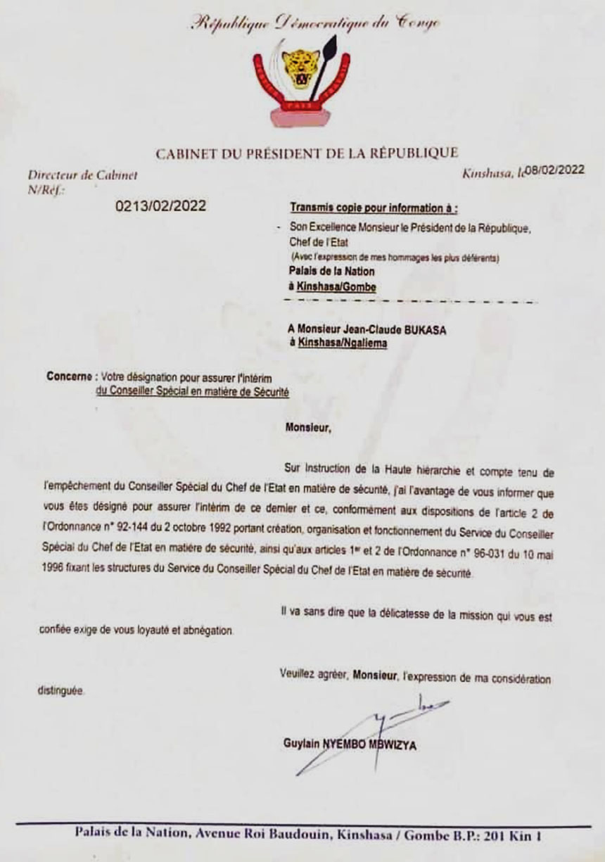 Jean-Claude Bukasa désigné pour assumer l’intérim du Conseiller spécial du chef de l’Etat