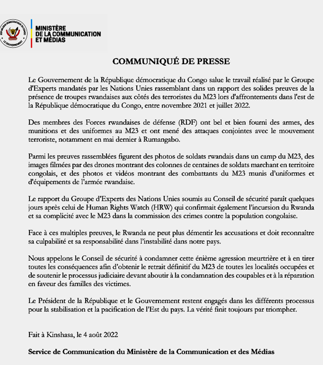 Kinshasa appelle le Conseil de sécurité à condamner le Rwanda
