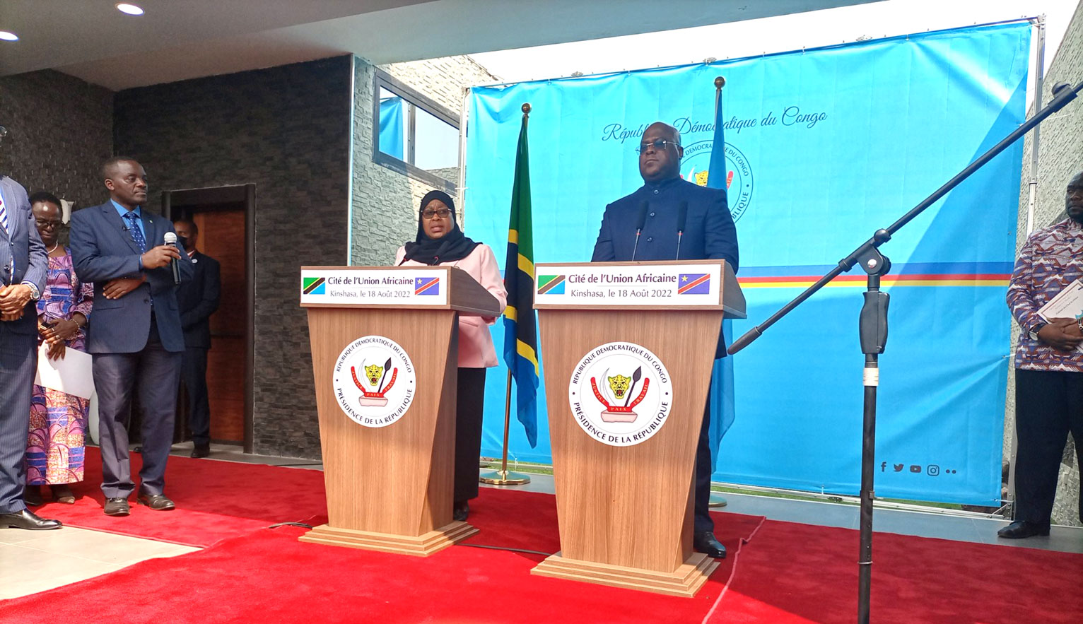 Kinshasa et Dar-Es-Salam ont promis, hier jeudi 18 août, de discuter de la mise en œuvre effective des domaines de coopération en mi-septembre 2022. Cetta annonce a été faire dans le communiqué final sanctionnant le séjour à Kinshasa de la Présidente de la Tanzanie.