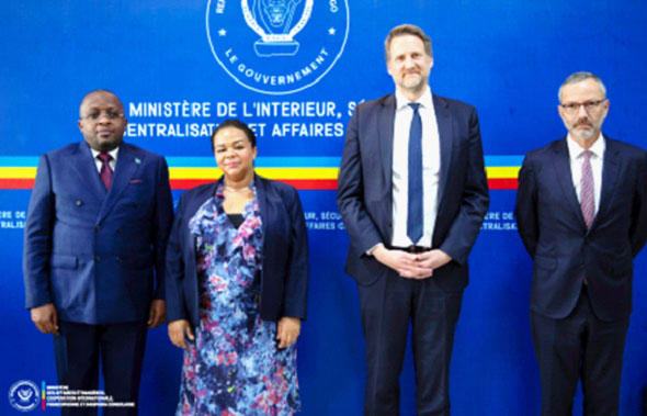 Le vice-Premier ministre, ministre de l'Intérieur, de la Sécurité et des Affaires coutumières, Jacquemin Shabani Lukoo, et la ministre d'État, ministre des Affaires étrangères, Thérèse Kayikwamba, ont présidé, hier mercredi 12 novembre, à Kinshasa, une séance de travail stratégique avec une délégation française conduite par Frédéric Jung, Directeur des Nations Unies au ministère français de l'Europe et des Affaires étrangères, accompagné de Rémi Maréchaux, ambassadeur de France en République démocratique du Congo.