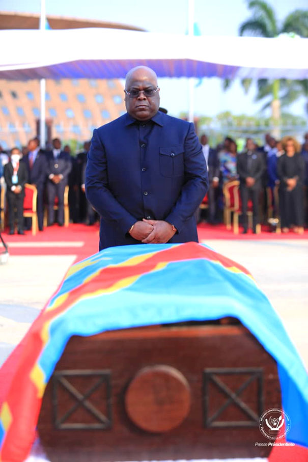 Après ces moments empreints d’intenses émotions, le cercueil est installé sur une jeep militaire d’apparat. Le cortège s’est ébranlé, quittant l’aéroport pour le Palais du peuple, siège du Parlement congolais où des hommages sont rendus à ce digne fils du pays par des officiels, des invités et la population.