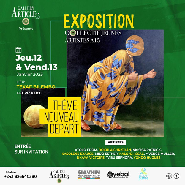 L’organisation culturelle «Gallery article 15» annonce pour les 12 et 13 janvier à Kinshasa, l’exposition «Collectif jeunes artistes A 15». «Nouveau départ» sera le fil conducteur de cette exposition.