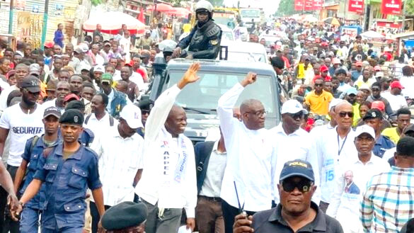 Une fois à la 18ème rue à Kabondo, le candidat n°15 à la présidentielle du 20 décembre a été contraint, par la population, de descendre de la voiture pour poursuivre le trajet à pieds. La caravane est ainsi partie de la 18ème rue route TP Kabondo à la place de la Grand’poste, en passant par le marché central, l’ACKIS, le rond-point du Canon… jusqu’à la place de la grande poste.