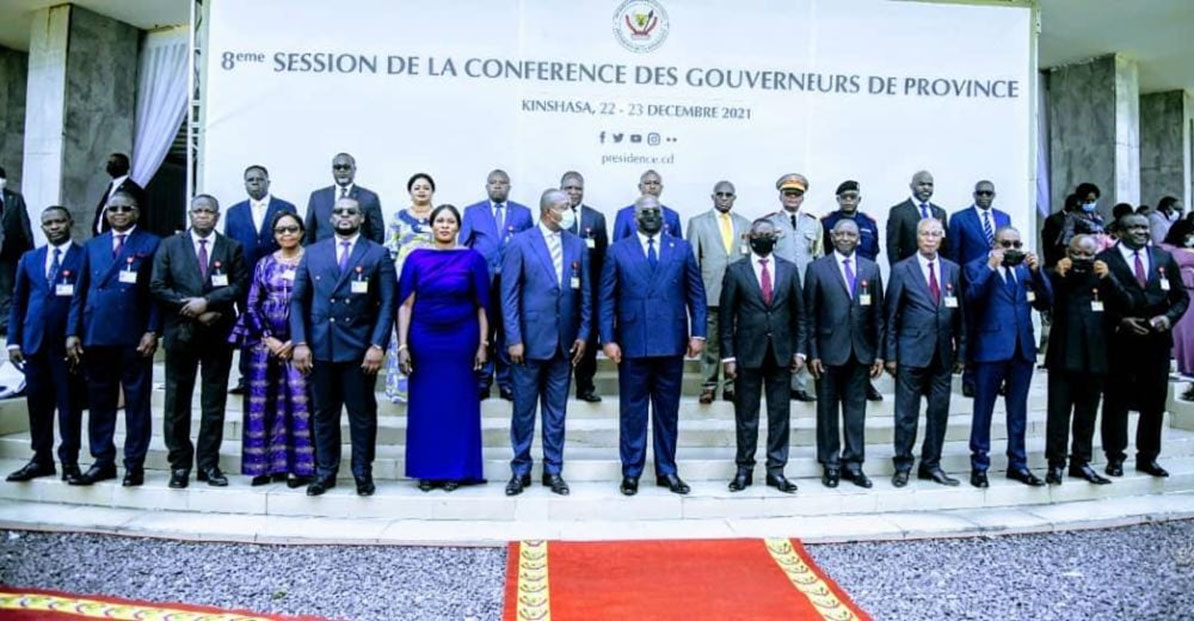 La 8ème conférence des gouverneurs s’était tenue à Kinshasa, du 21 au 23 décembre 2021 sous le thème « la stabilité dans la gouvernance, gage de la réussite du programme de développement d’urgence intégré du développement communautaire. »