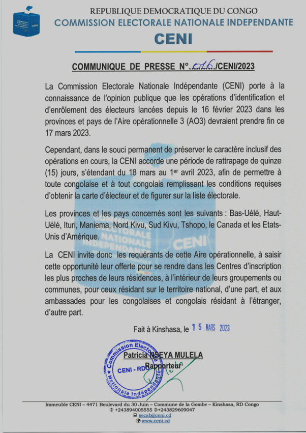 La Ceni prolonge de 15 jours l’enrôlement des électeurs dans l’AO3