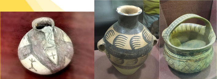 Des fissures symétriques sont visibles des deux côtés du pot de poterie déterrées de la couche culturelle néolithique de la montagne Gaotai, ville de Xinmin, province du Liaoning. Dans le Musée de la civilisation de la poterie antique à Pékin, il y a aussi une poterie peinte du néolithique avec des traces de restauration. Fyfy Solange TANGAMU