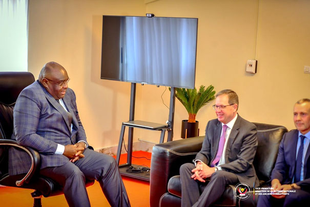 Le Vice- Premier, Ministre, Ministre de La Défense Nationale et des Anciens combattants, M. Jean- Pierre Bemba Gombo, a reçu en audience, hier jeudi 20 avril 2023, l’Ambassadeur de la Fédération de Russie en RDC, M. Alexey L. Sentebov. Au menu de leurs échanges, la situation sécuritaire dans la partie Est de la République démocratique du Congo.