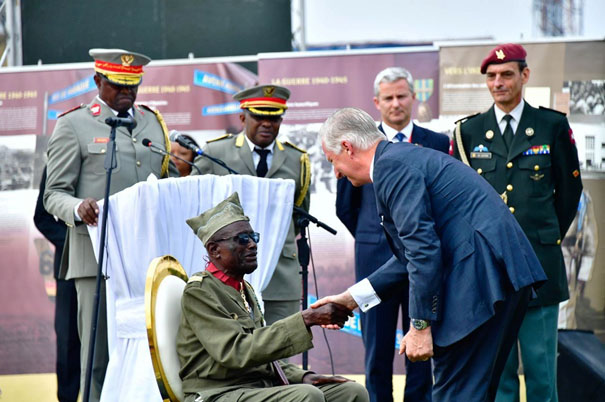 Cette faste cérémonie a été organisée pour honorer la mémoire des militaires de la Force publique, décédés durant la 1ère Guerre mondiale (1914-1918) et la 2ème Guerre mondiale (1940-1945). A cette occasion, le dernier vétéran encore vivant, le caporal Albert Kunyuku, âgé de 100 ans, a été fait Commandeur de l’Ordre de la couronne de la Belgique.