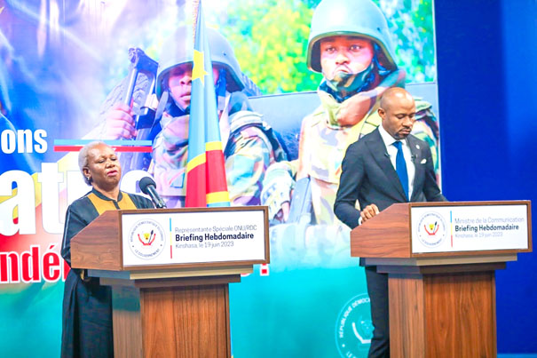 Le gouvernement et la Mission des Nations Unies pour la stabilisation du Congo (Monusco) ont évoqué, hier lundi 19 juin, la mise en œuvre du » Plan de transition conjoint de retrait » de la mission onusienne en RDC. C’était au cours du briefing que le ministre de la Communication et Médias, Patrick Muyaya, a animé conjointement avec Mme Bintou Keita, représentante spéciale du secrétaire général des Nations unies et cheffe de la Monusco.