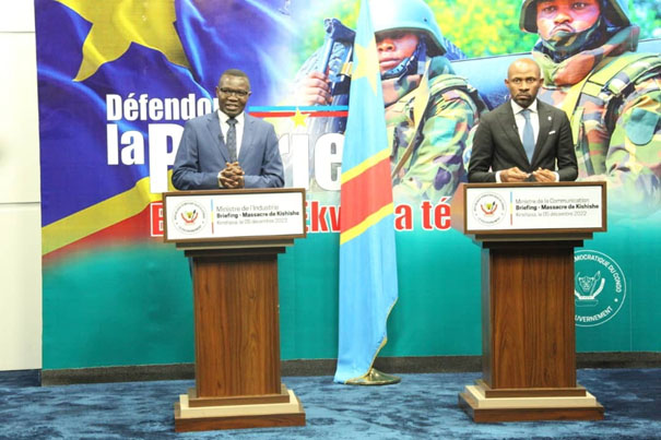 Le bilan du massacre commis par les terroristes du M23 appuyés par le Rwanda, le 29 novembre dernier dans le village de Kishishe s’est alourdi, passant d’une centaine de morts à 272 civils tués. L’information a été livrée par le ministre de la Communication et Médias, Patrick Muyaya et son collègue de l’Industrie, Julien Paluku Kahongya, au cours d’un briefing presse qu’ils ont co-animé hier lundi 5 décembre dans la soirée.