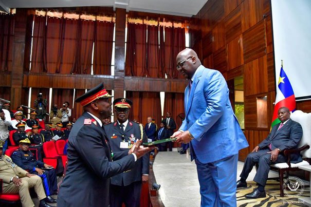 Le Chef de l’Etat Félix Tshisekedi a présidé, hier jeudi 3 août, la cérémonie de remise des brevets à 218 auditeurs de la 8ème session ordinaire et 6ème session spéciale du Collège des Hautes études de stratégie et de défense (CHESD), ainsi qu’à 27 stagiaires de la 6ème promotion de l’Ecole supérieure d’administration militaire (ESAM).