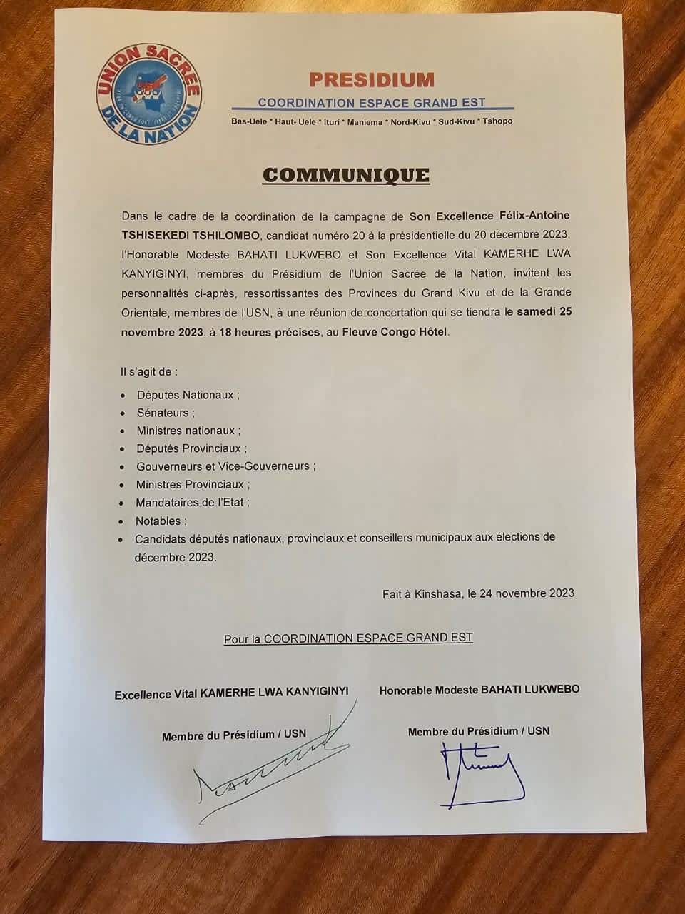Ata na lifelo toko samba kaka". Cette phrase en lingala se traduit littéralement par : " Même en enfer, nous allons quand même plaider [notre cause].