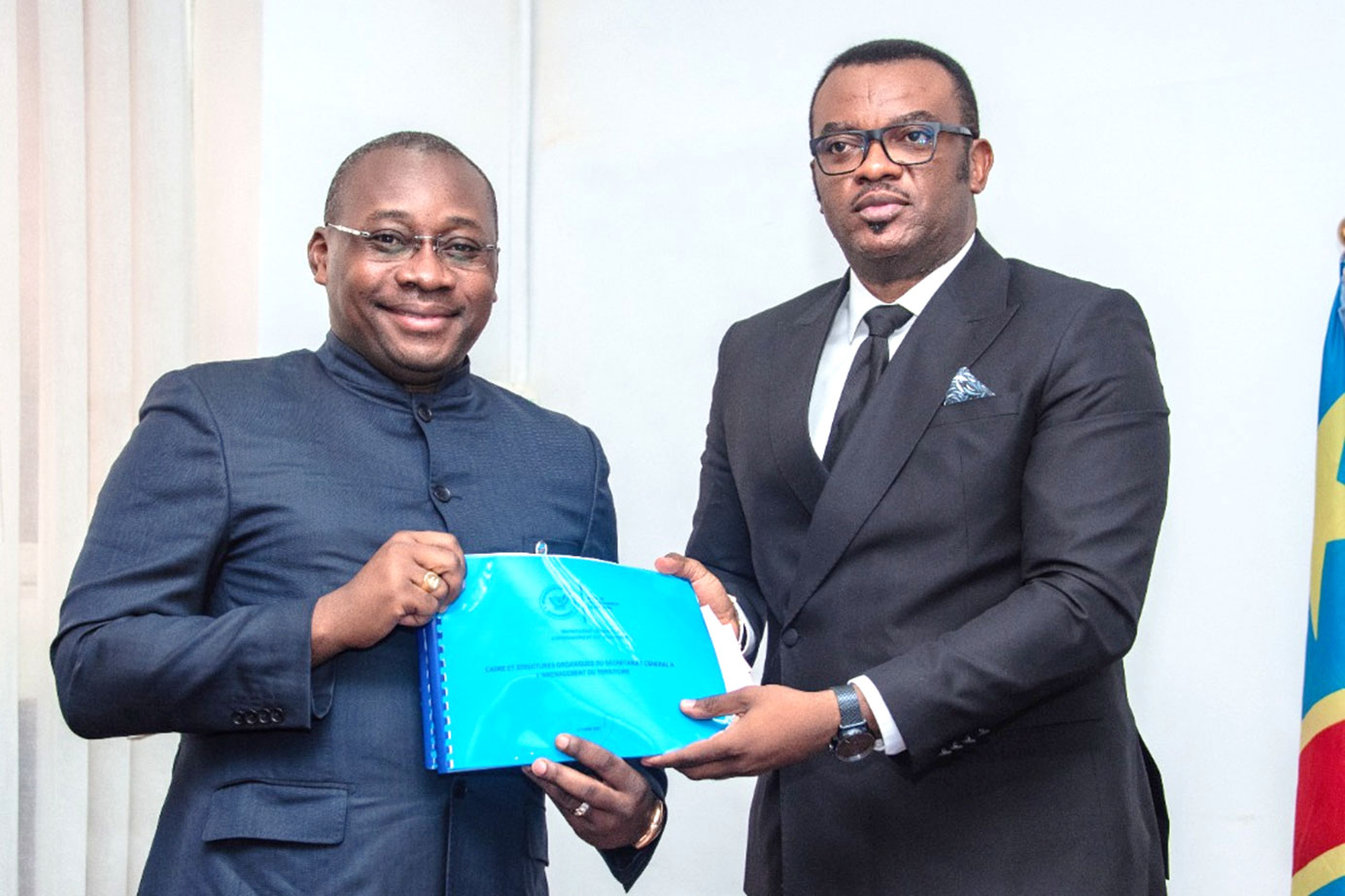 Ces innovations sont contenues dans le nouveau cadre et structure organique dont la signature est intervenue le vendredi 4 novembre à Kinshasa entre le vice-Premier ministre, ministre de la Fonction publique, Jean-Pierre Lihau Ebua et le ministre d’Etat, ministre de l’Aménagement du territoire, Guy Loando Mboyo.