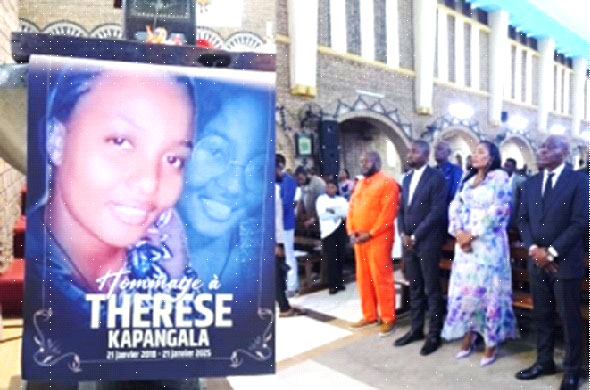 Thérèse Kapangala, symbole de courage et d'engagement, fut abattue le 21 janvier 2018 devant l'église Saint-François de Sales à Kinshasa. Ce jour-là, armée uniquement de sa foi et de ses convictions, elle participait pacifiquement à une manifestation contre la tentative de modification de la Constitution. À seulement 24 ans, elle incarnait l'espoir d'un Congo nouveau, un Congo où la justice, la dignité humaine et les droits fondamentaux sont respectés.