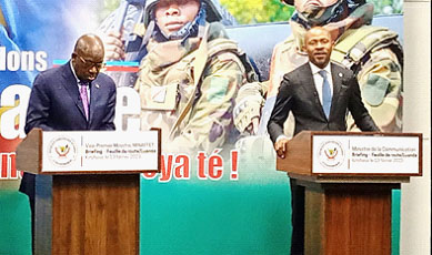 L’état des lieux de la mise en œuvre de la feuille de route de Luanda pour le retour de la paix en RDC a fait l’objet du briefing presse animé conjointement, hier lundi 13 février, par le Vice-Premier ministre, ministre des Affaires étrangères, Christophe Lutundula et le ministre de la Communication et Médias, porte-parole du Gouvernement, Patrick Muyaya.